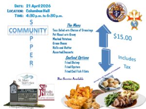 Community Pot Roast Dinner Tue. April 21 4:30 – 6:30 pm @ The Columbus Hall